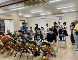 現会長の小池正治さんは、今から5年前の2020年にバトンを渡されて今日まで仲間とシャギリを子どもたちへ伝えています。参加者は小学生限定ではなく、小学生の時に教えてもらっていた子どもが中学・高校大学・社会人になってもシャギリの練習にかかわっています。
