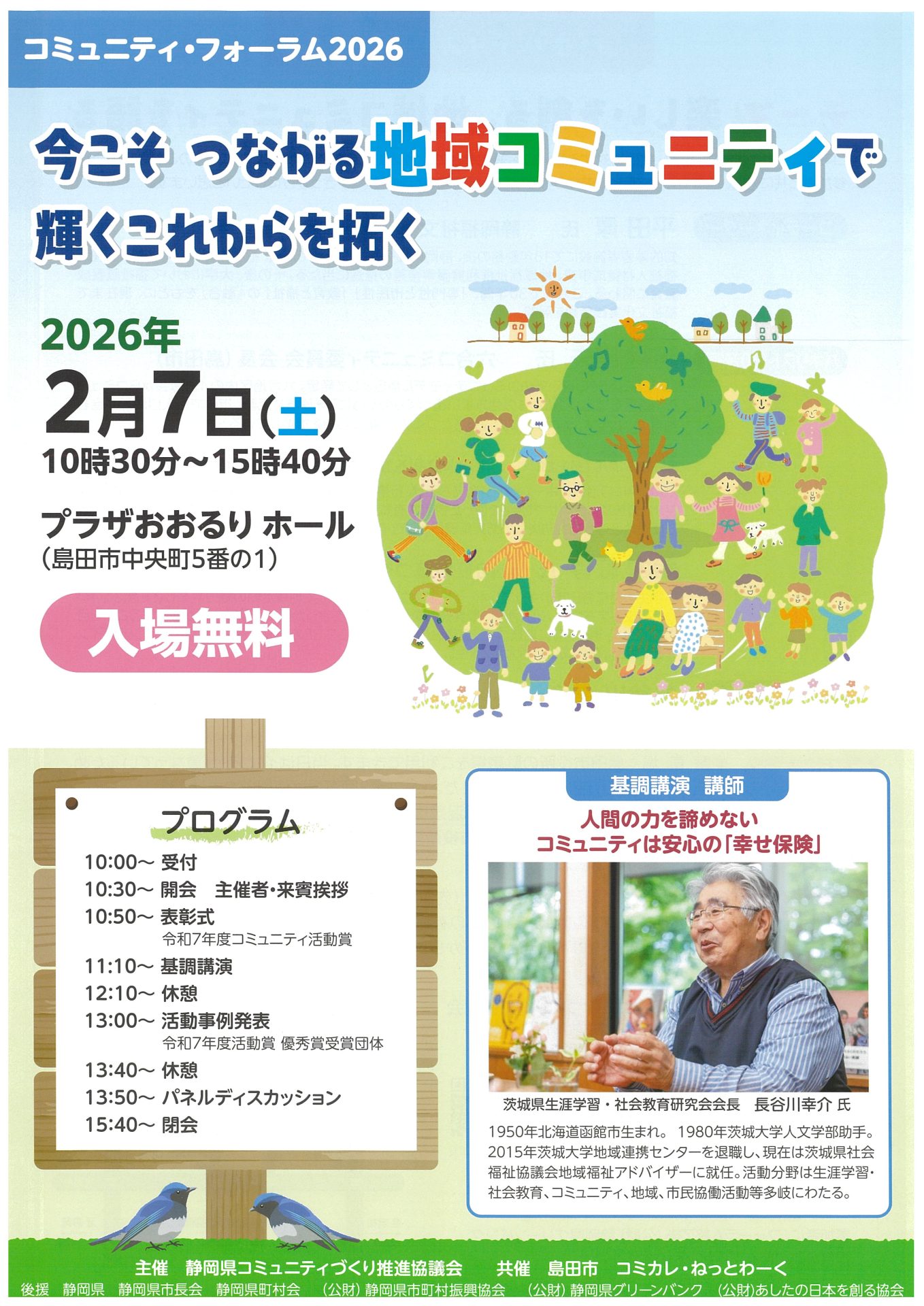 また、当協議会推進専門委員 平田 厚 様(静岡福祉文化実践研究所 所長)をコーディネーターとし、「楽しいを創る、地域コミュニティを語る」をテーマにパネリストと共にディスカッションをしていただきます。